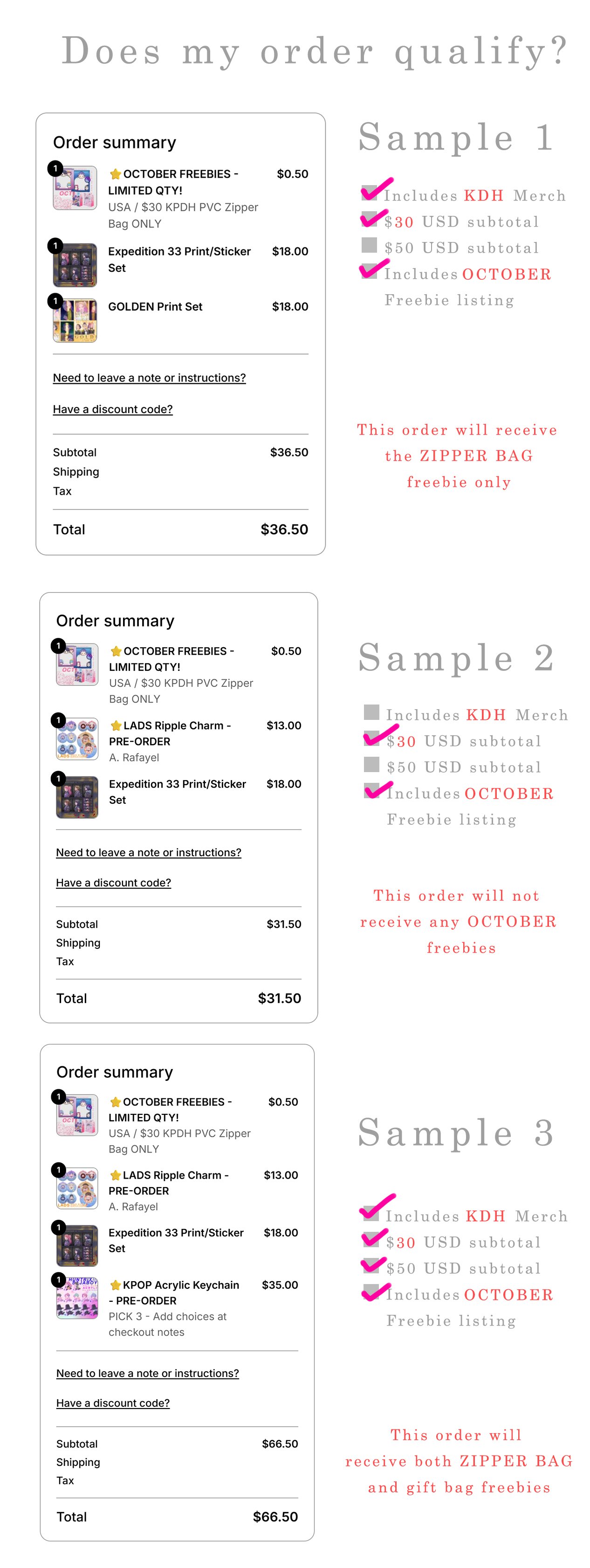 ENDS ON OCTOBER 31 . PVC Zipper Bag is limited to the 1st 100 qualified orders ONLY. If sold out, it will be switched to a sticker sheet.
